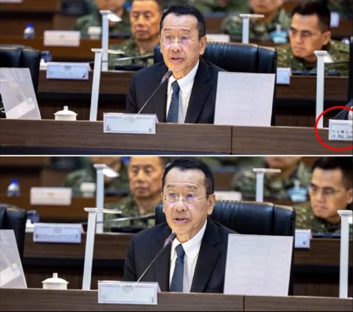 台防务部门日前进行了“汉光41号”演习高阶干部图上兵推,在兵推后最先发布的新闻稿配图上,可以看到台防务部门负责人顾立雄左手边一人的中英文对照名牌,上面清楚地写着“印太联五次长”等字眼。